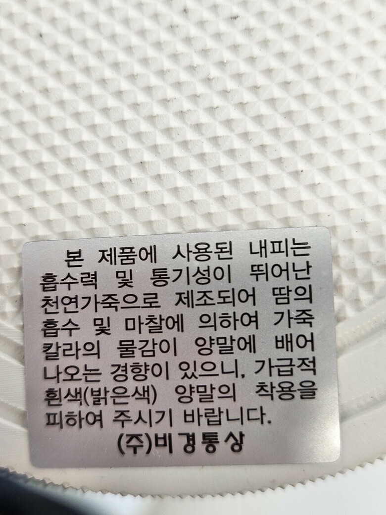 | 1. 제품 소재 (운동화인 경우에는 겉감, 안감을 구분하여 표시) | 기타 천연가죽, 소가죽 |