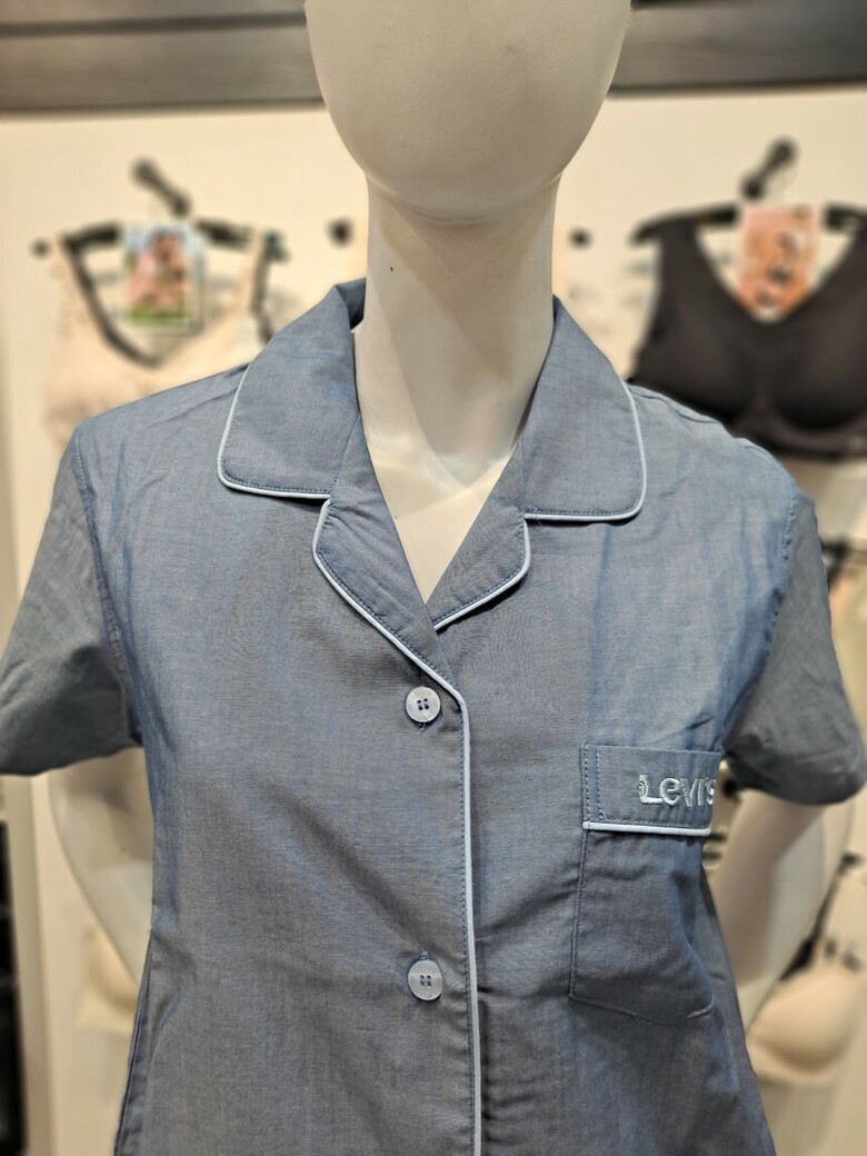 가슴 포켓에 리바이스 로고가 있는 블루 파자마