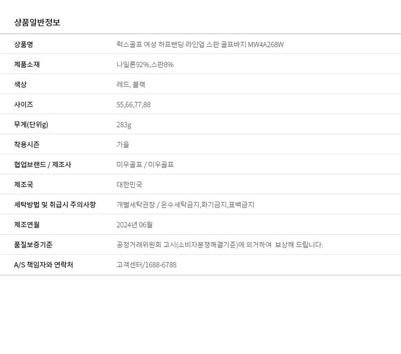 | 6. 세탁방법 및 취급시 주의사항 | 상세이미지 참조 |