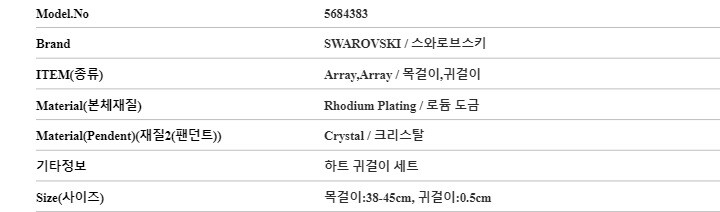 | 1. 소재 / 순도 / 밴드재질 | 실버 / 쥬얼리 - 로듐 도금 / 팬던트 - 크리스탈 |