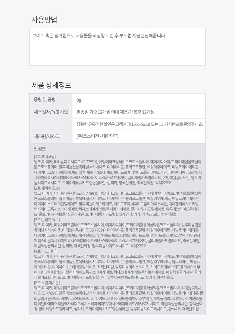 | 8. 기능성 화장품의 경우 화장품법에 따른 식품의약품안전청 심사 필 유무 | 없음 |