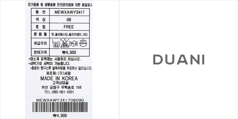 | 6. 취급시 주의사항 | 손세탁 권장 |