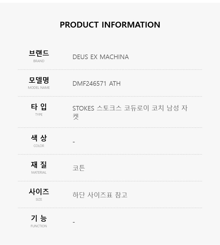 데우스엑스마키나 DMF246571 ATH STOKES 스토크스 코듀로이 코치 남성 자켓 점퍼