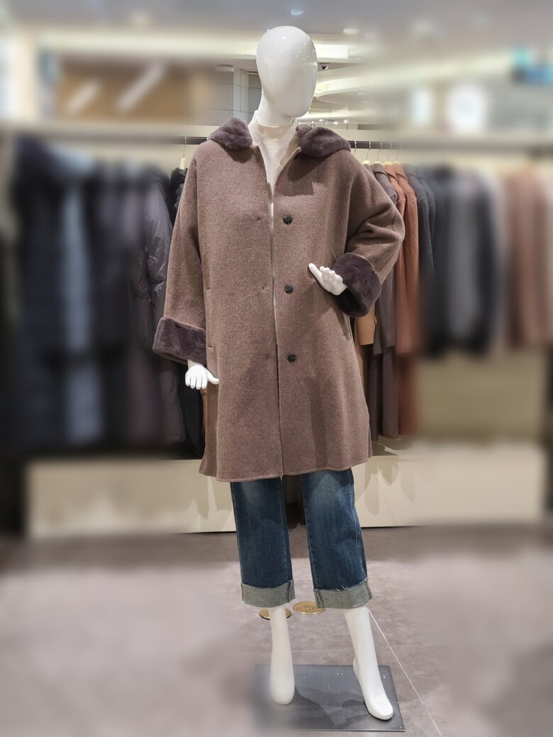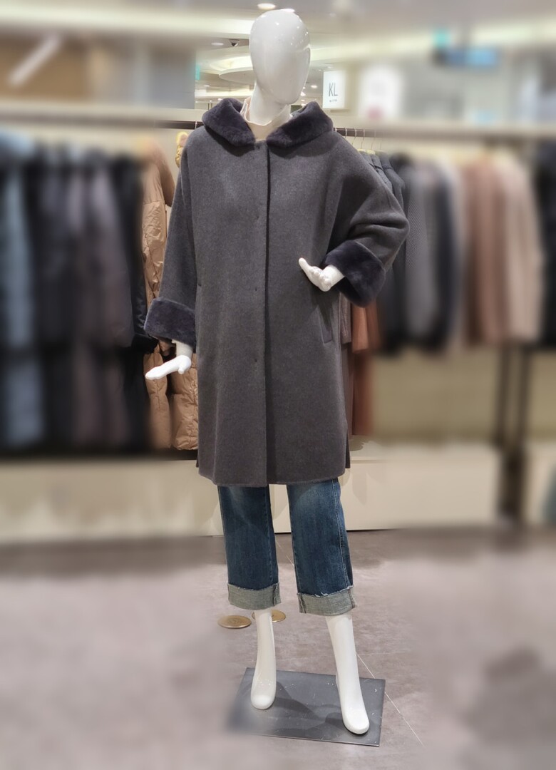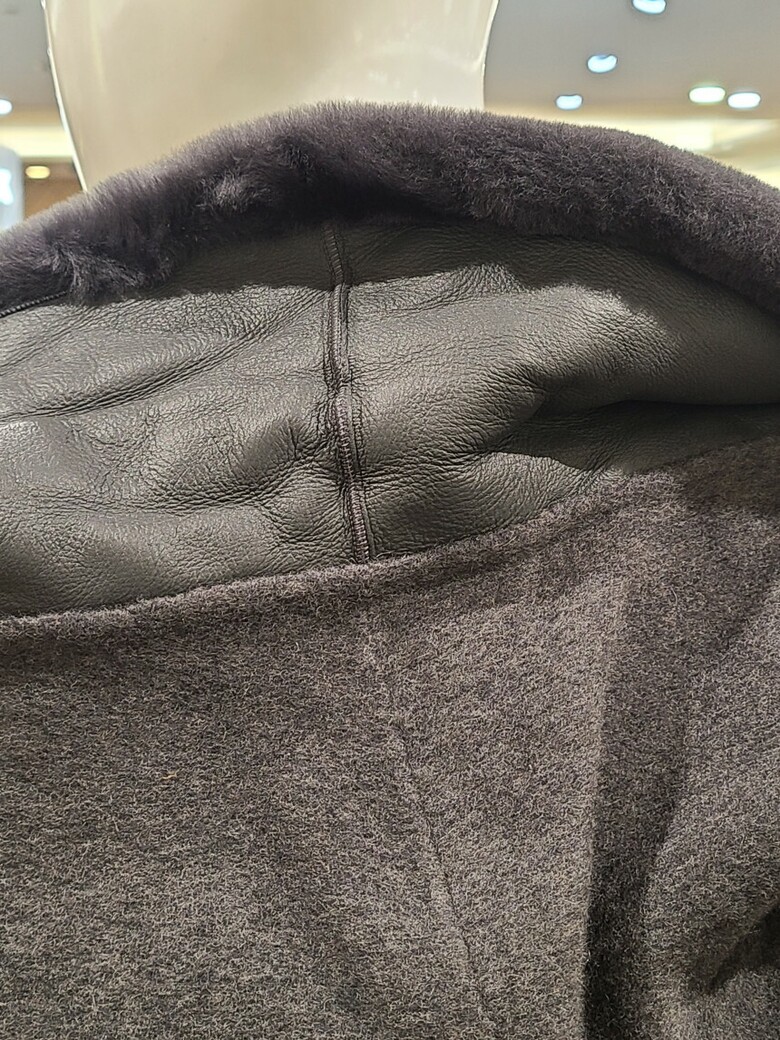 · 겉감 : 울 95%, 캐시미어 5%, 안감: 폴리에스터 100%, 배색겉: 양모 100%, 배색안: 양가죽 100%