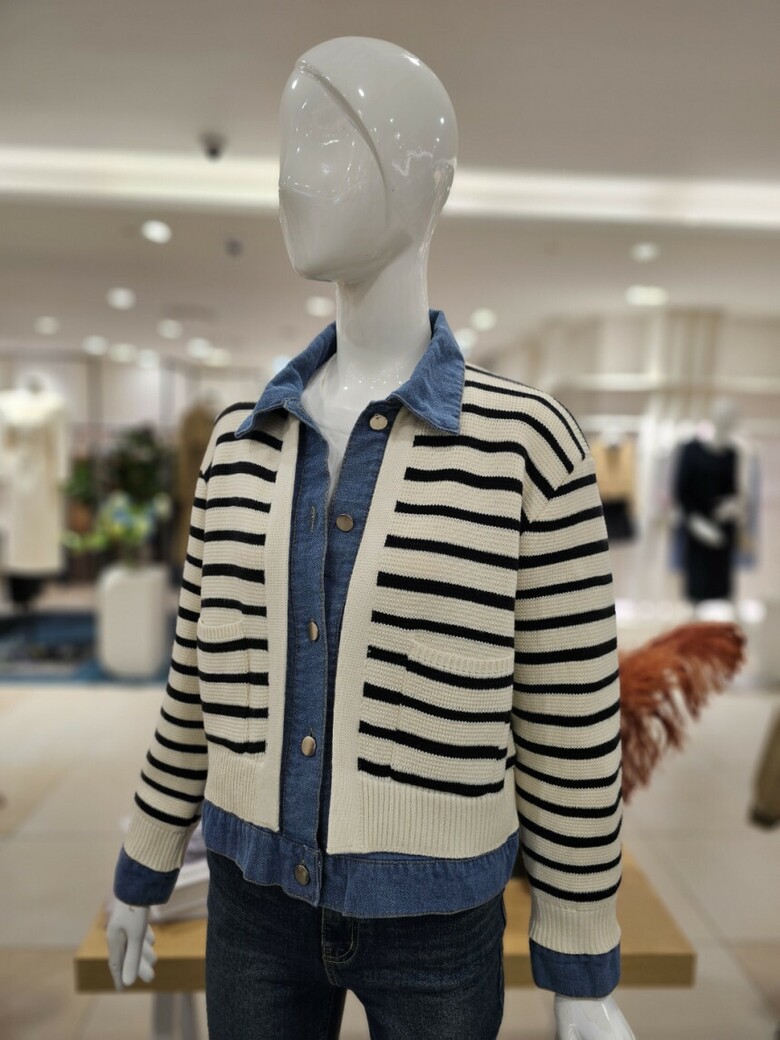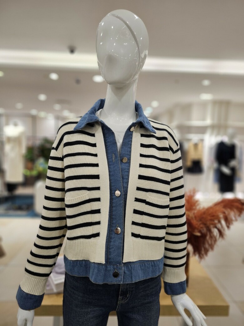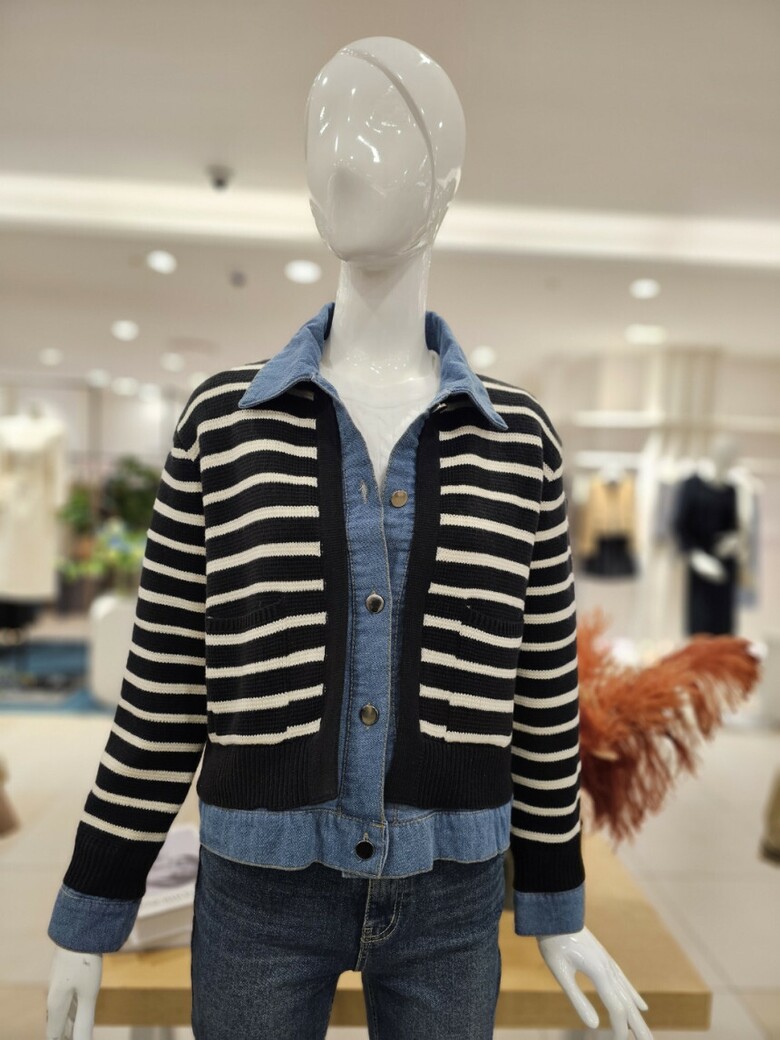 포커스 단가라 청배색 니트자켓 FF4H3JK30673