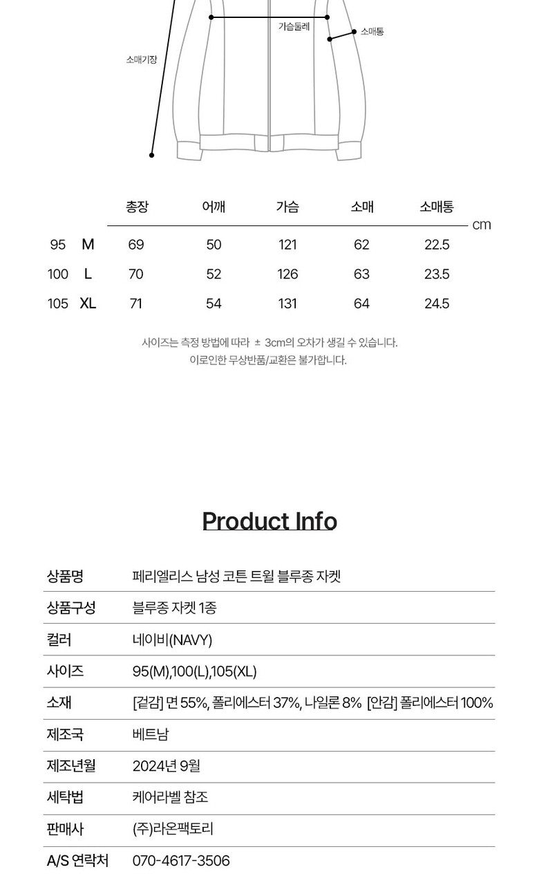 페리엘리스 남성 코튼 트윌 블루종 자켓_PE3HWMJP71 [NAVY]