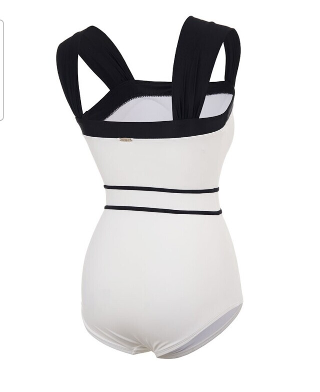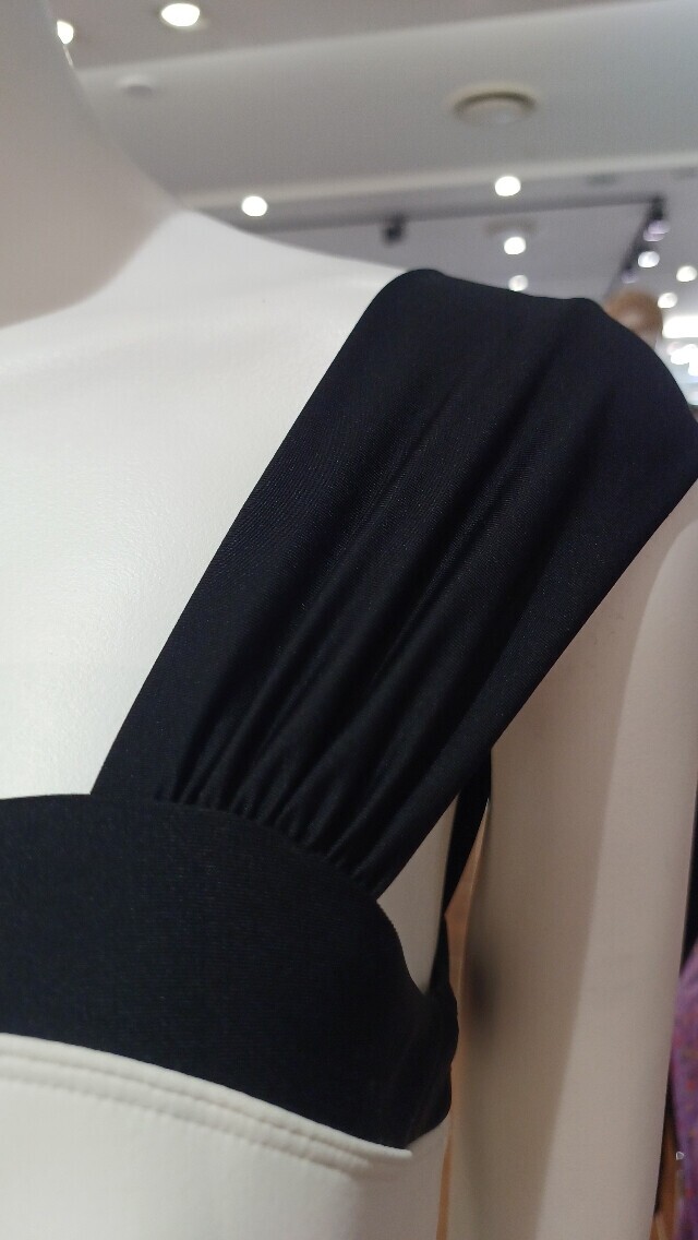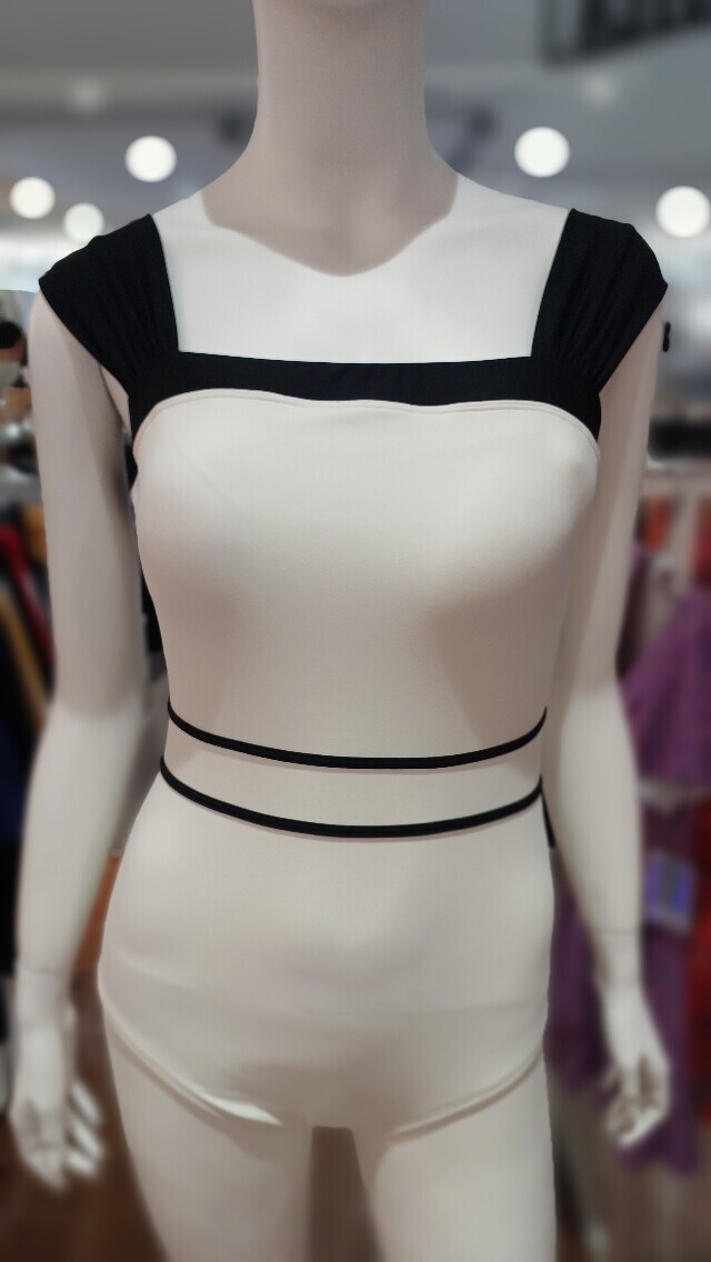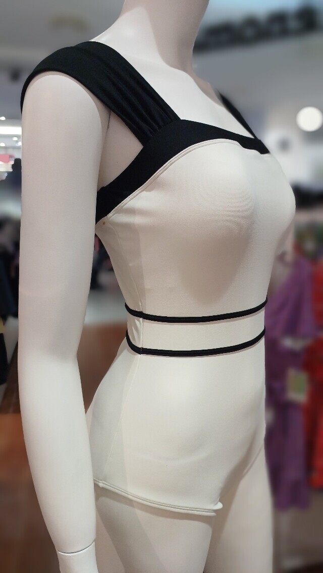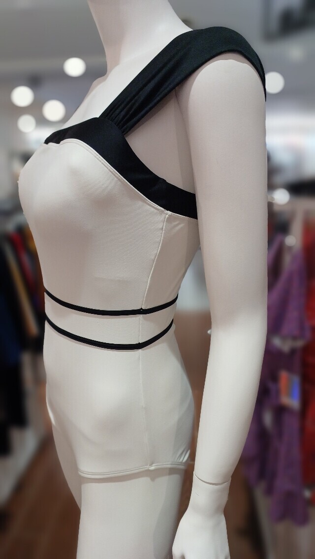 튜브탑 스타일의 블랙and화이트 컬러가 고급스러운 비치 원피스입니다.