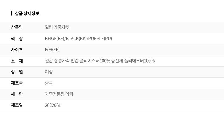 2. 색상 | 색상:BEIGE(BE)/BLACK(BK)/PURPLE(PU) |