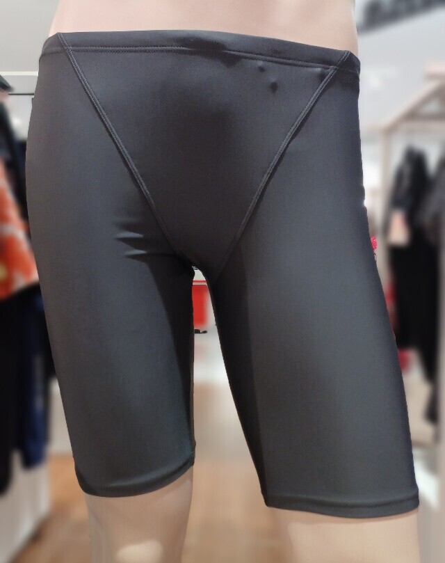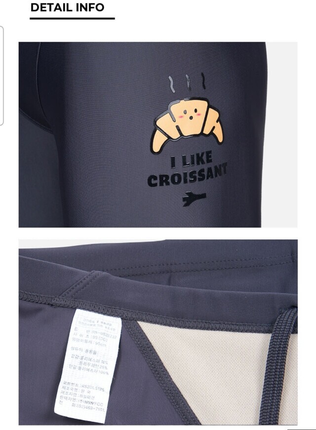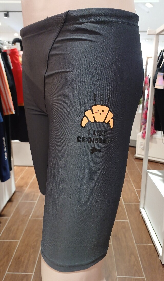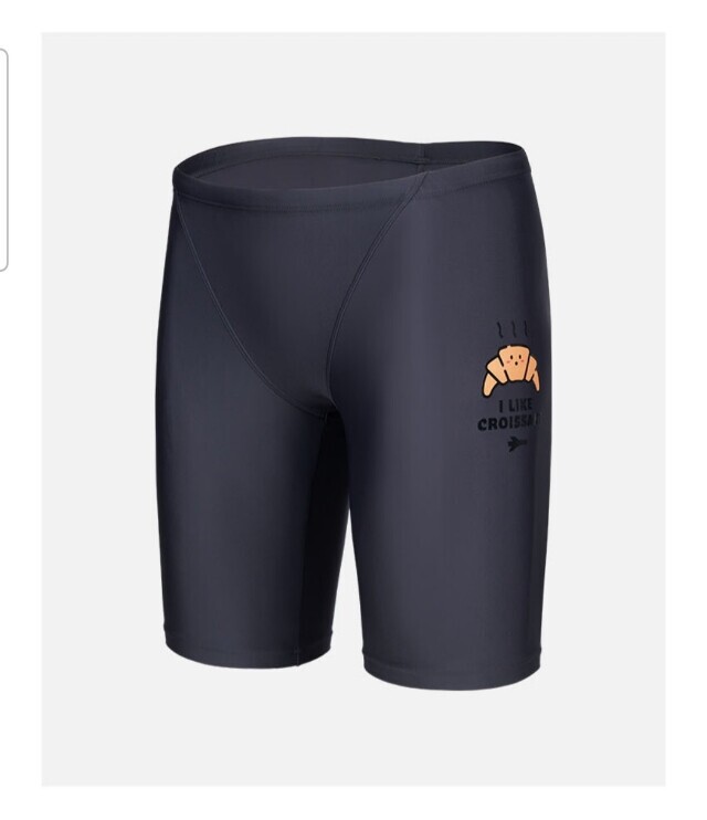 깔끔한 다크그레이 컬러에 크로아 일러스트 패턴이 포인트인 남성 4부 수영복입니다 .