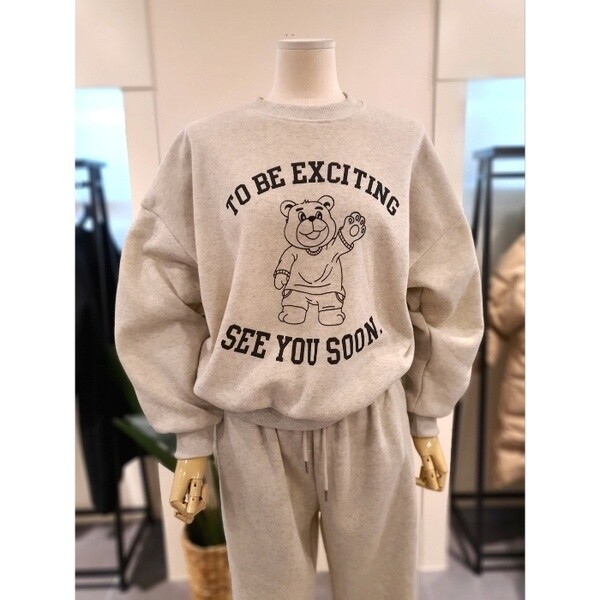 KESTOC04OT_약기모 베어 맨투맨 세트 오트밀