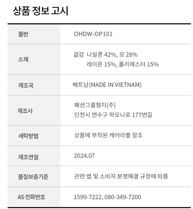 6. 세탁방법 및 취급시 주의사항 | 상품상세참조 |