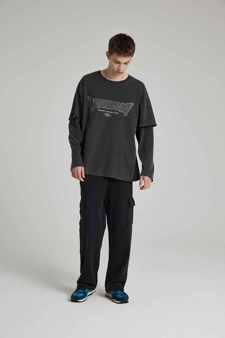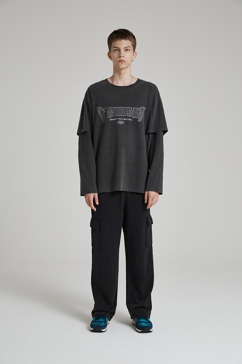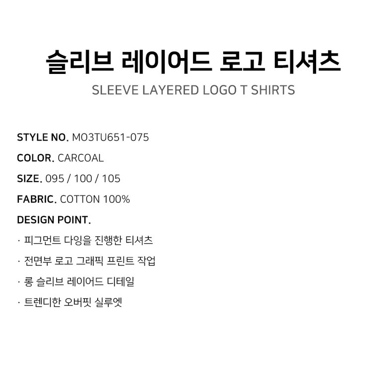 [벙커버스터] 슬리브 레이어드 로고 티셔츠 CHARCOAL (MO3TU651-075)