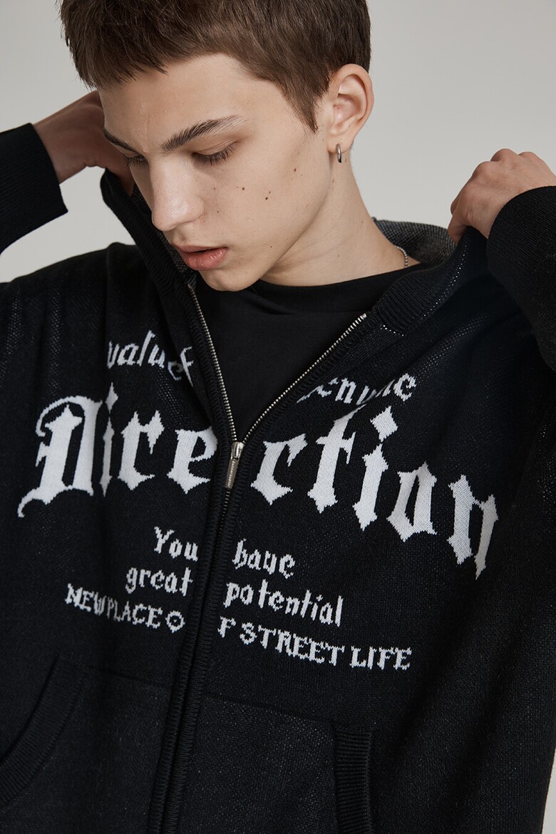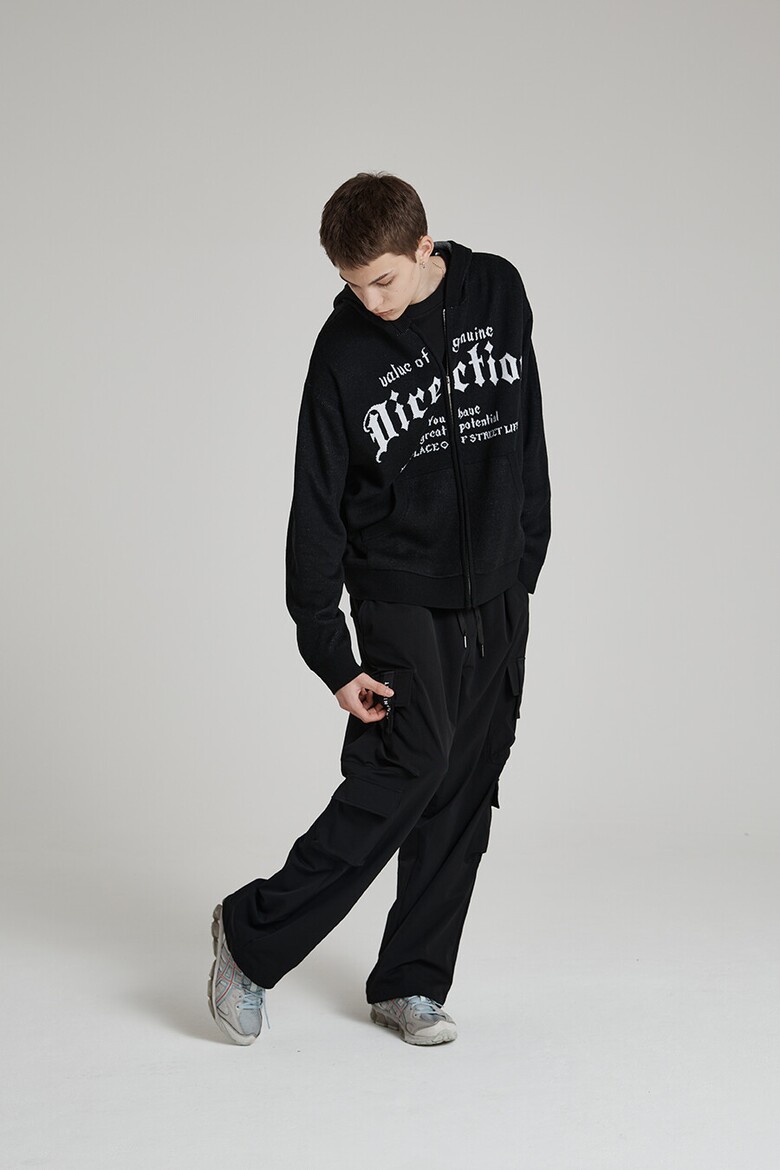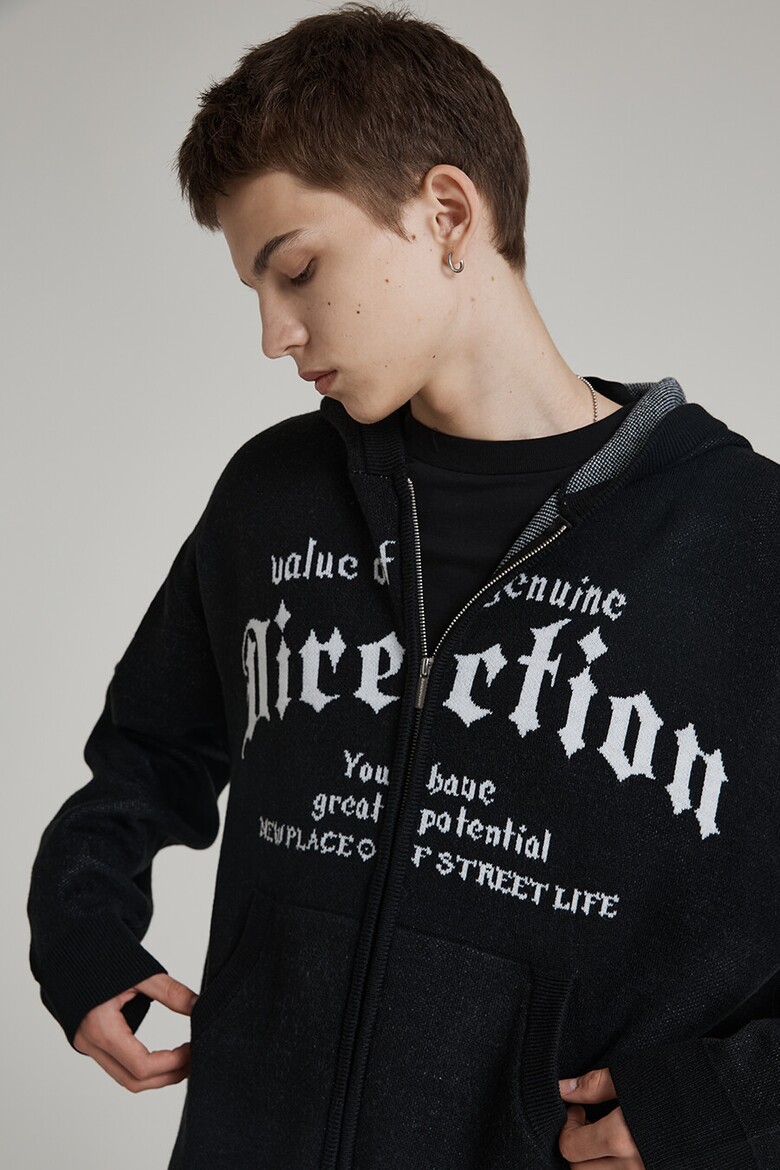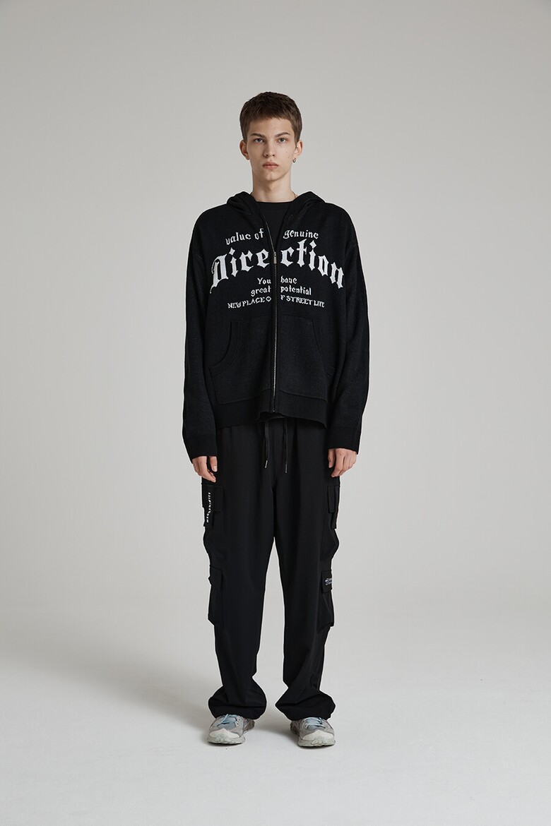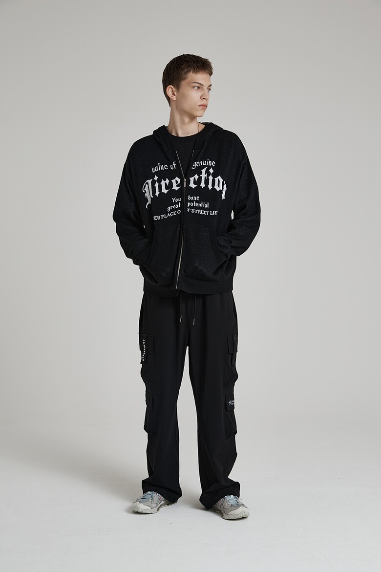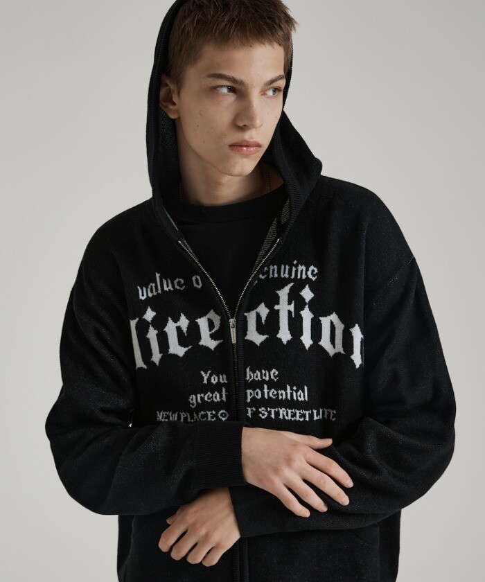 [벙커버스터] 레터링 니트 후드 집업 BLACK (MP5SU506-076)