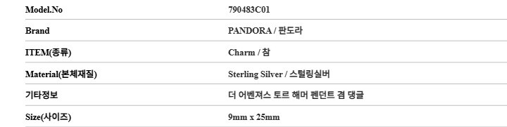 판도라 790483C01 마블 더 어벤져스 토르 해머 펜던트 겸 댕글 실버 참