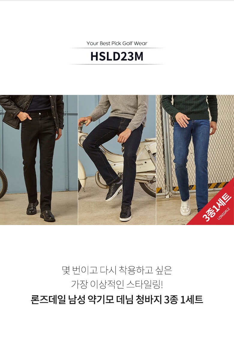 보스케 남성 겨울 골프웨어 골프 약기모 데님 청바지 3종 1세트
