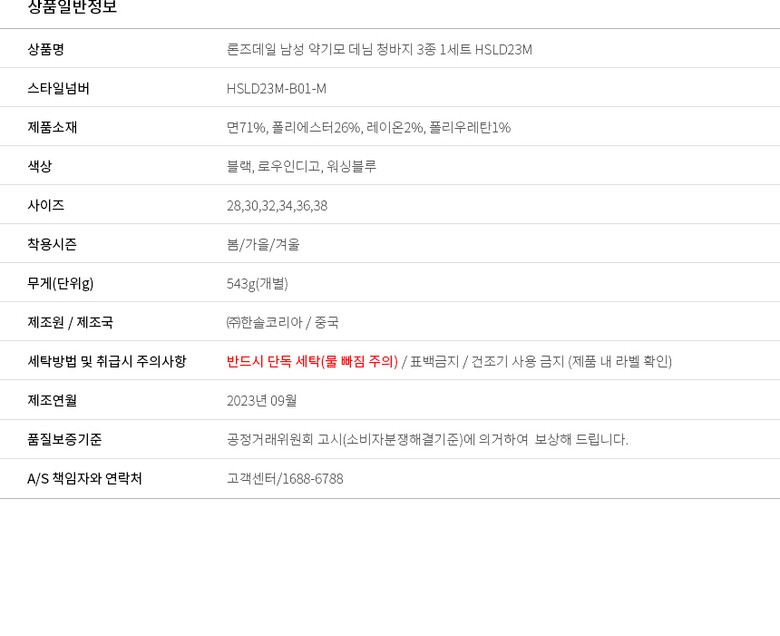 | 6. 세탁방법 및 취급시 주의사항 | 상세이미지 참조 |