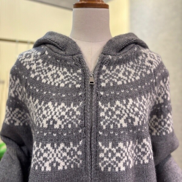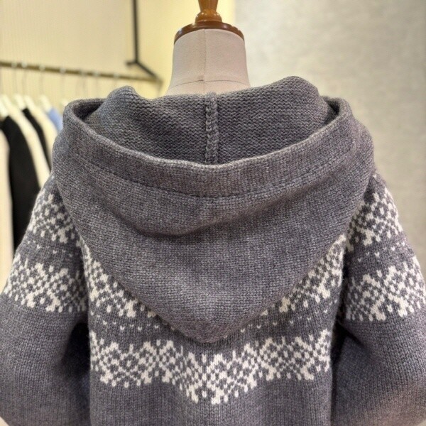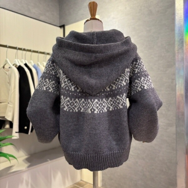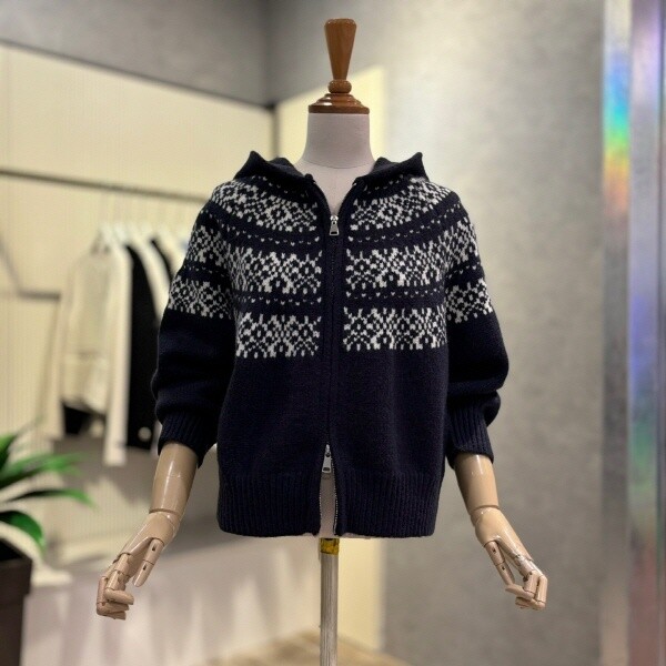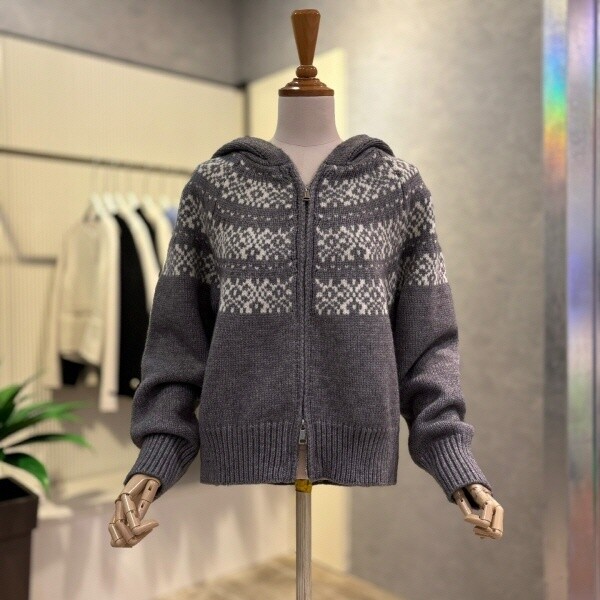 2024년? f/w 패턴 배색 집업 후드 니트 가디건 입니다. 세련된 디자인으로 코디 아이템 입니다.