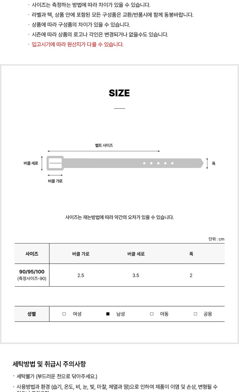 3. 치수 버클 가로 2.5 cm X 버클 세로 3.5 cm X 폭 2 cm