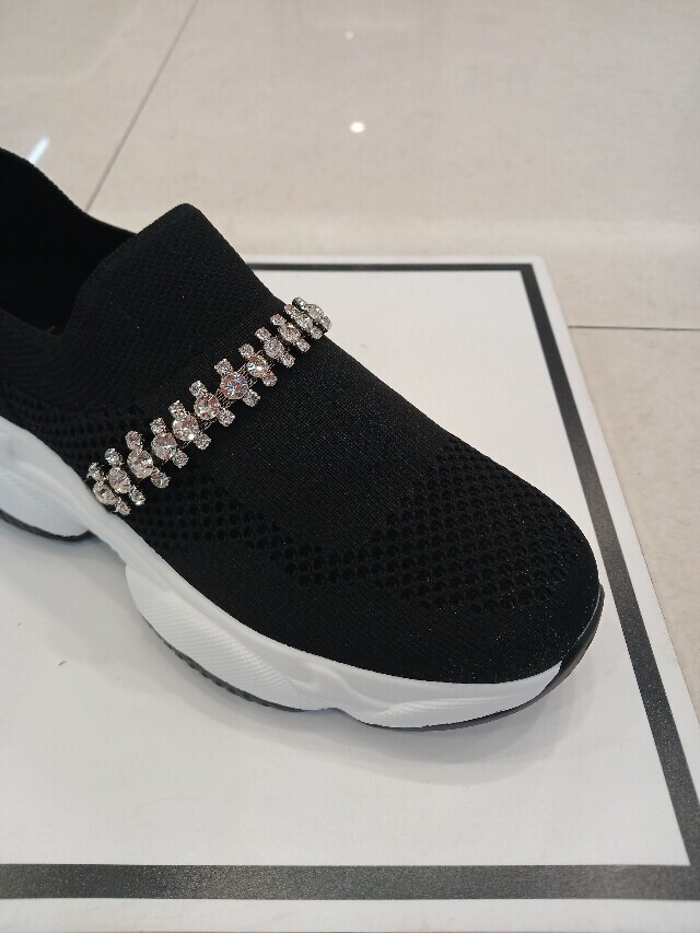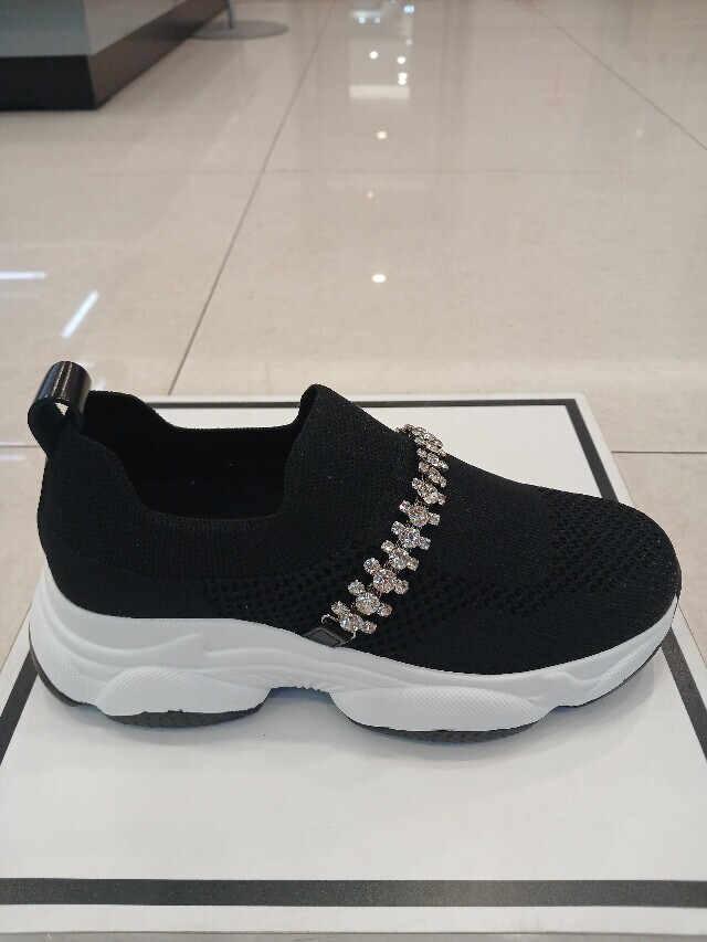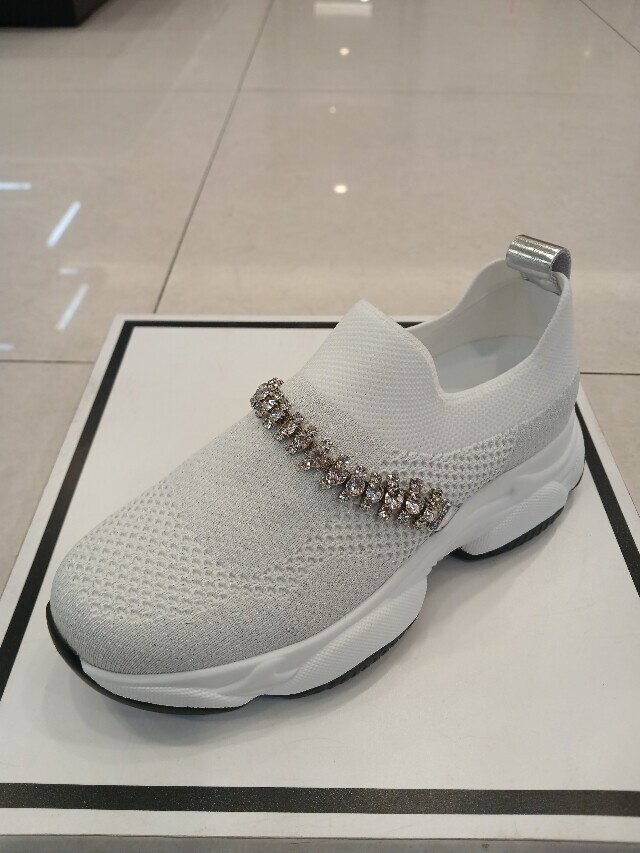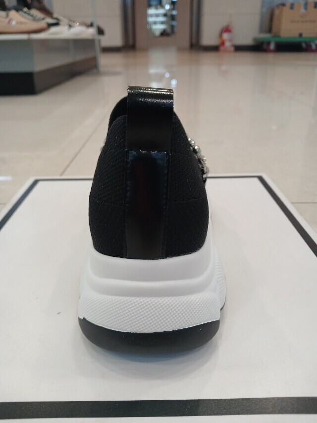굽높이 약5cm의 높이에 니트소재를 특수공법으로 가공처리하여 제작된 여성 쿠셔닝 스니커즈입니다