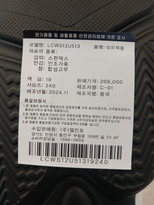 1. 제품 소재 (운동화인 경우에는 겉감, 안감을 구분하여 표시) 상품상세참조