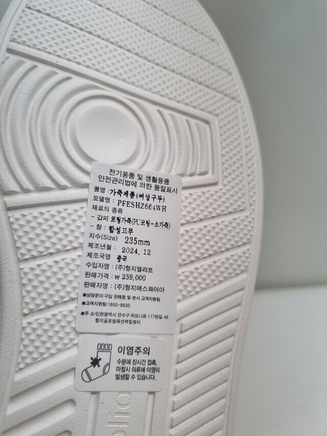 | 1. 제품 소재 (운동화인 경우에는 겉감, 안감을 구분하여 표시) | 소가죽 |
