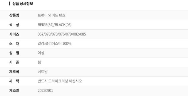 1. 제품 소재 (섬유의 조성 또는 혼용률을 백분율로 표시, 기능성인 경우 성적서 또는 허가서) 상품상세참조