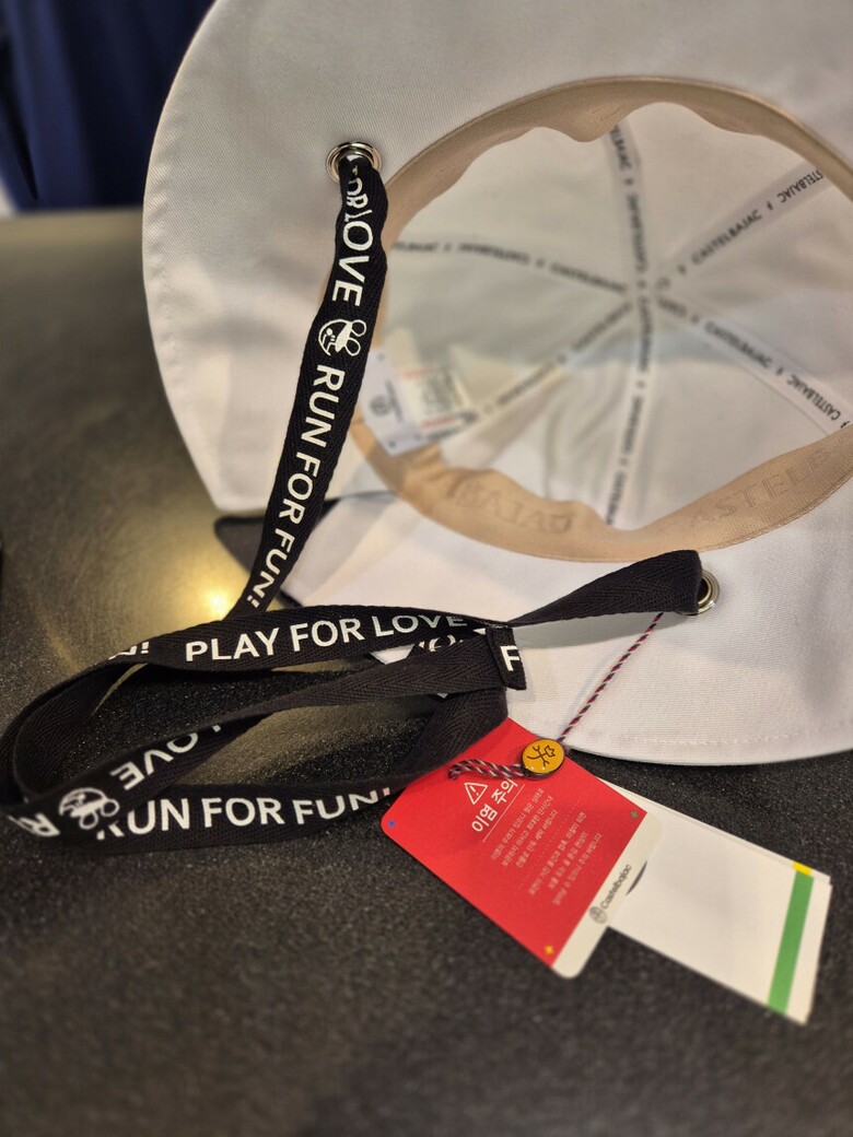 앞 챙의 길이보다 뒷 쪽의 챙이 조금 더 짧고,