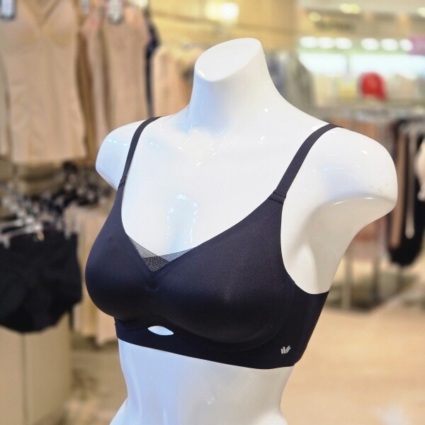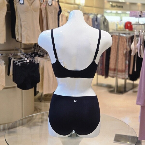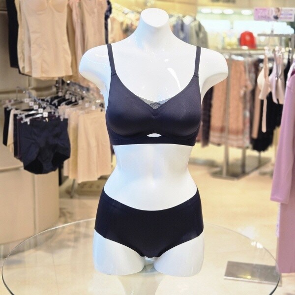 접착 기법을 사용하여 봉제를 최소화한 무봉제 노와이어 서포트 브라와 무봉제 팬티의 세트로 신축성과 밀착감이 좋고 풀컵 라인으로 가슴을 안정적으로 감싸 주며 전중심 상변의 크로스 망이 들뜨지 않도록 잡아주고 과하지 않은 탈착 몰드컵을 사용하여 자연스러운 볼륨감을 주는 제품