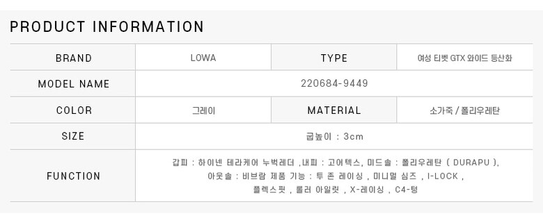 로바 220684-9449 티벳 GTX 와이드 여성 등산화
