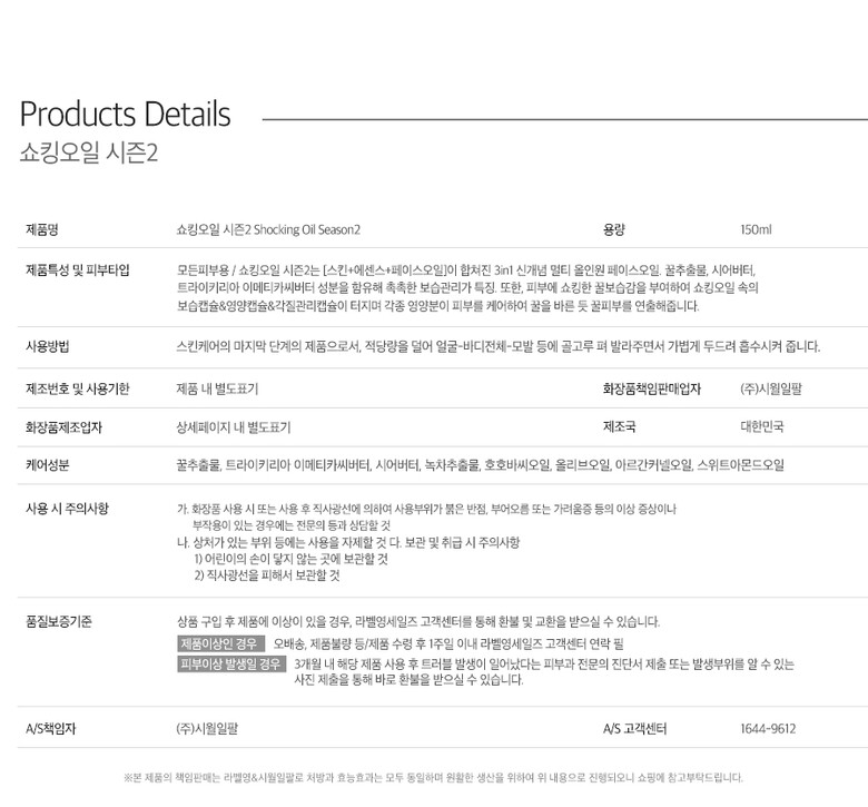 라벨영 쇼킹오일 2탄 150ml 영양 보습 진정 캡슐 팡팡 멀티 페이스오일 수부지추천