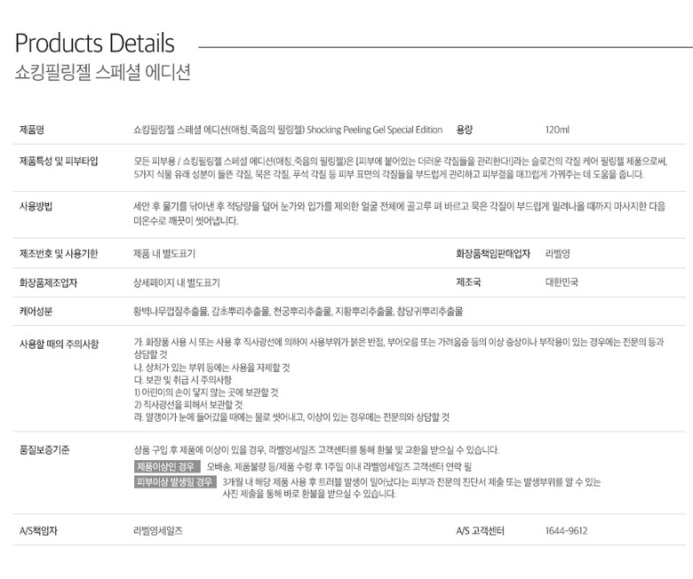 라벨영 쇼킹 죽음의필링젤 120ml 스페셜 에디션 저자극 얼굴각질 노폐물 블랙헤드제거 스크럽