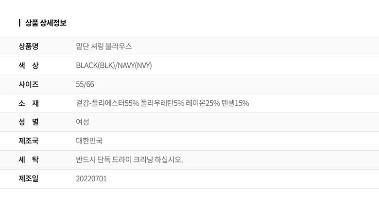 | 2. 색상 | 색상:BLACK(BLK)/NAVY(NVY) |