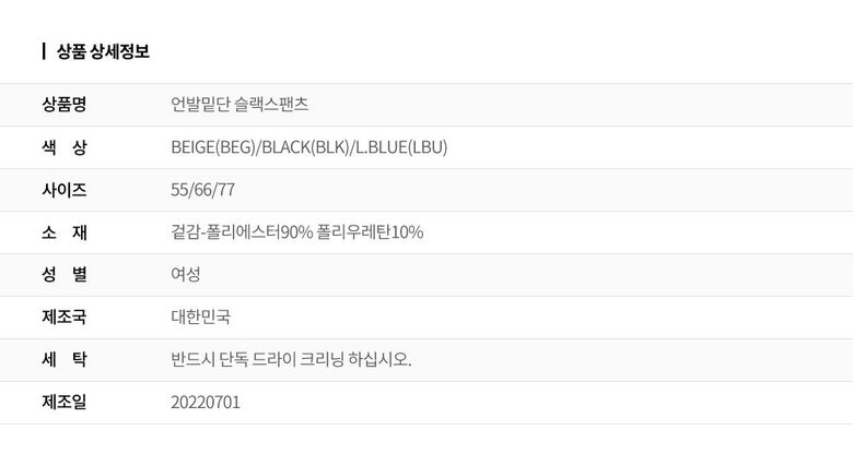 2. 색상 색상:BEIGE(BEG)/BLACK(BLK)/L.BLUE(LBU)
