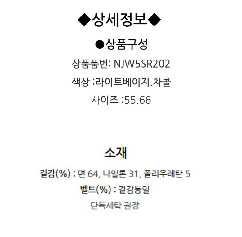 | 6. 세탁방법 및 취급시 주의사항 | 상품상세참조 |