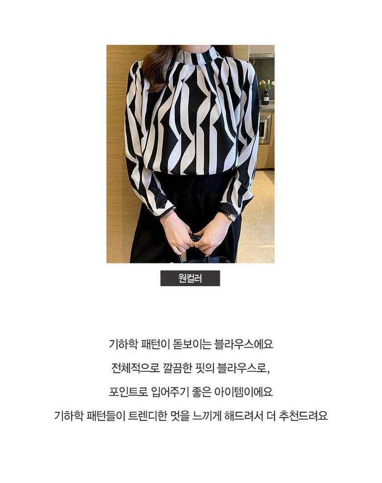 [~88까지]헬리 기하학 패턴 주름 블라우스