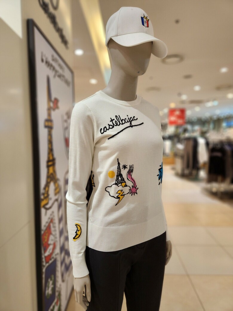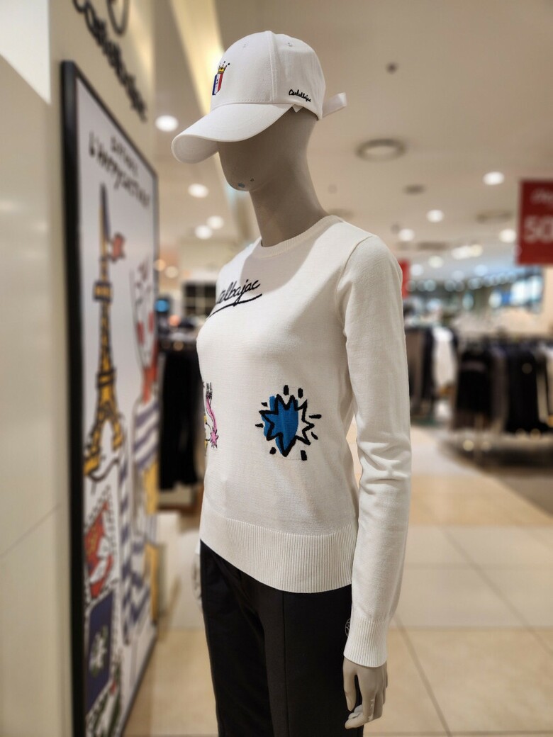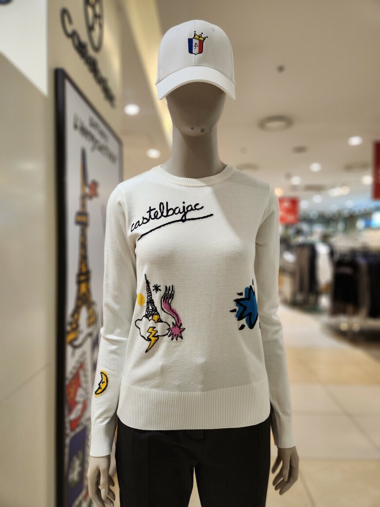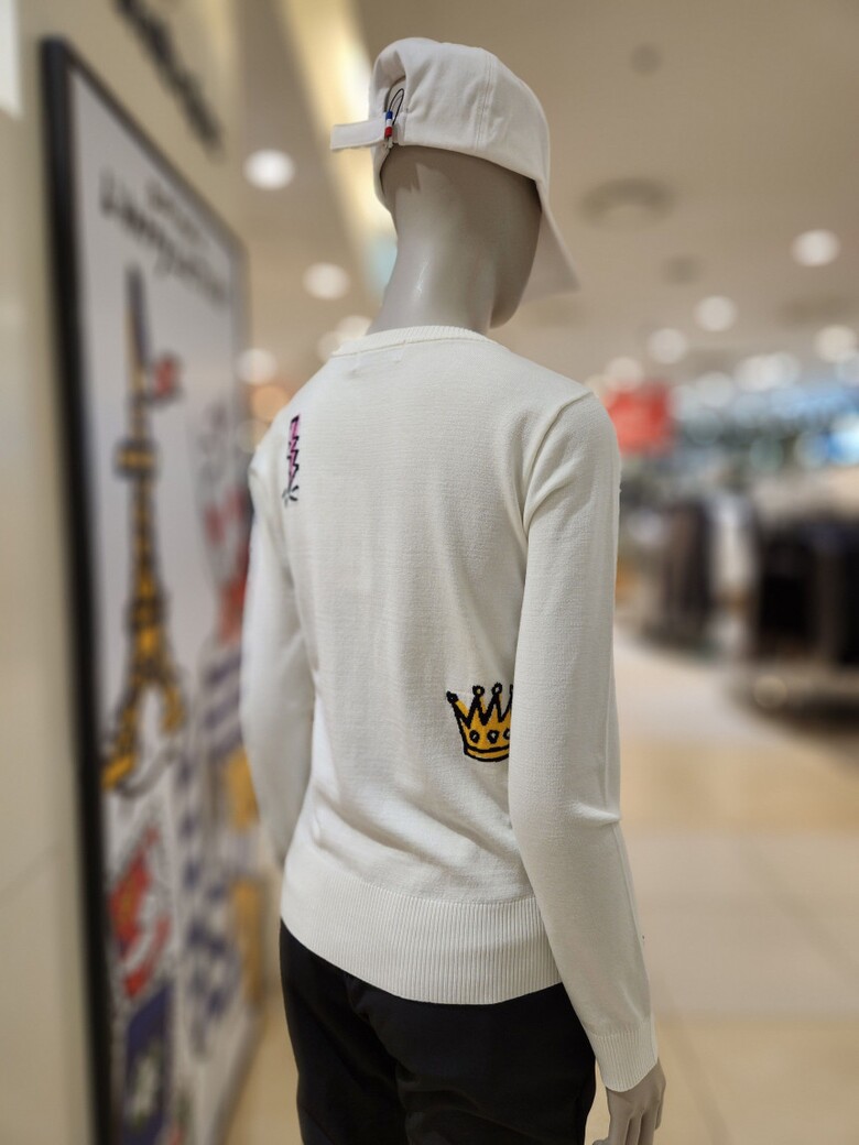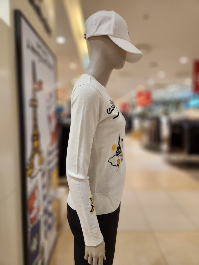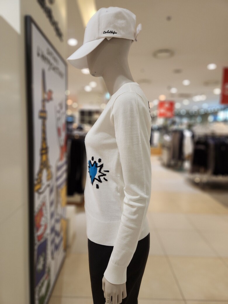 여성 시즌 아트웍 포인트 라운드 니트셔츠 BGCFSW501 WH