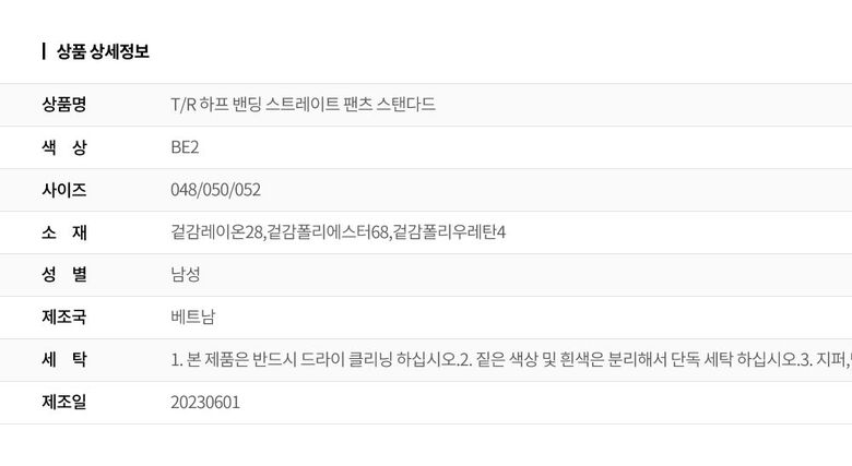 | 6. 세탁방법 및 취급시 주의사항 | 상세설명 참조 |