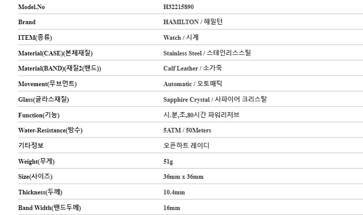 | 7-2. 시계 - 기능, 방수 등 | 상세정보참조 |