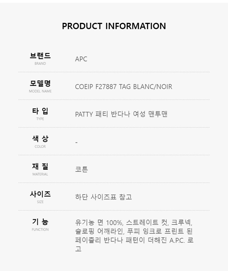 • 아울렛 상품의 특성 상 “택이 훼손”된 경우가 있으나 이는 불량이 아니며 무료 반품 대상 상품이 아닙니다.