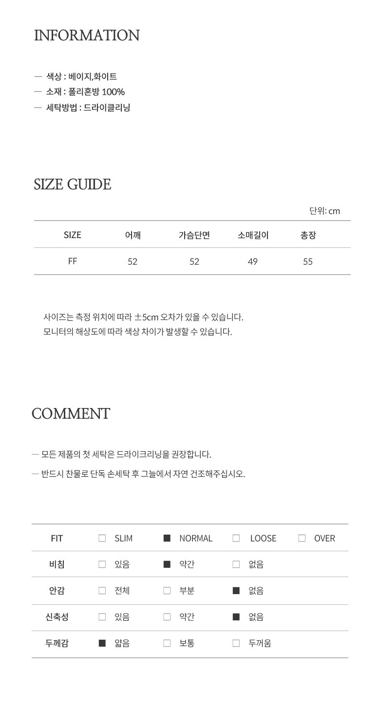 | 2. 색상 | BE_베이지/WH_화이트 |