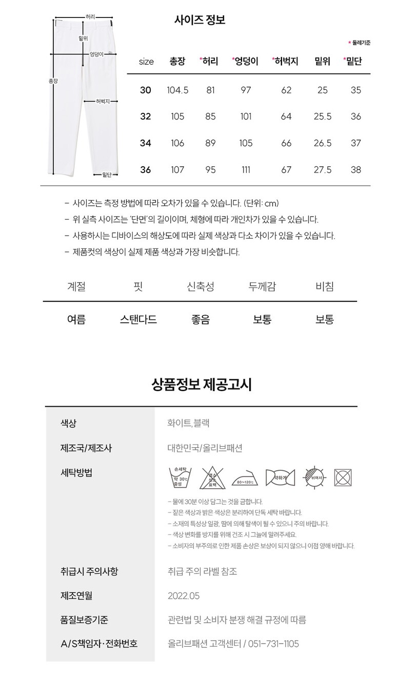 | 6. 세탁방법 및 취급시 주의사항 | 케어라벨 참조 |