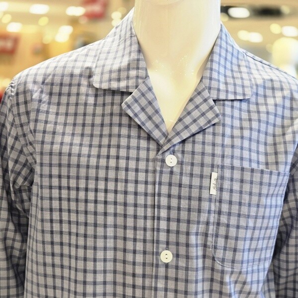 200수 면을 사용한 체크 선염 남성 잠옷으로 간결한 체크 무늬가 세련되고 칼라감이 고급스러운 기본 카라 디자인의 제품