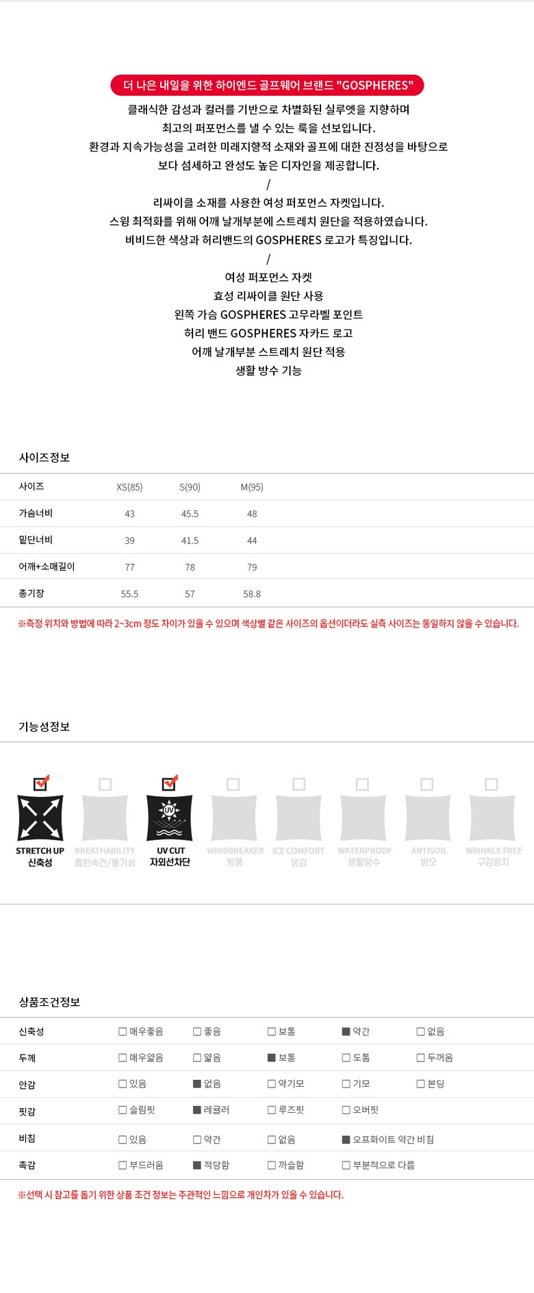 | 3. 치수 | XS(85),S(90),M(95) |