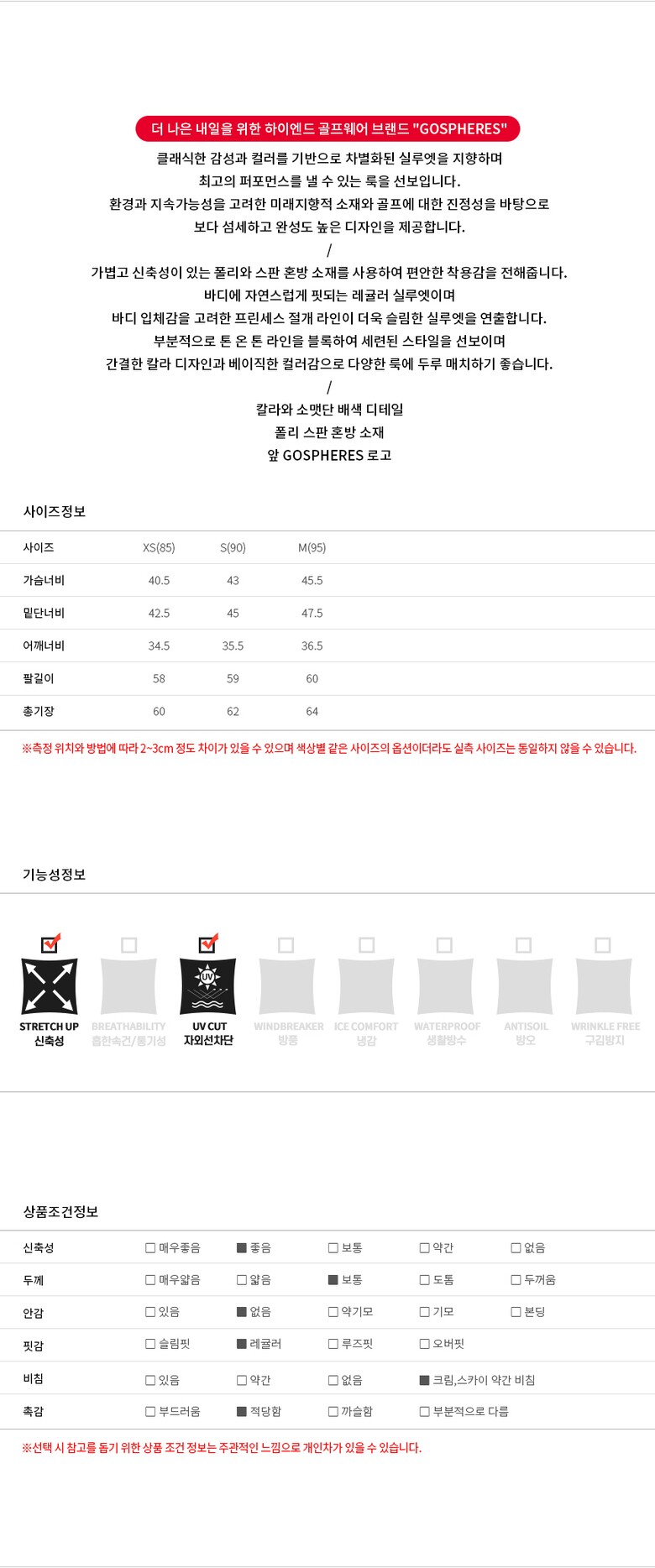 | 3. 치수 | XS(85),S(90),M(95) |