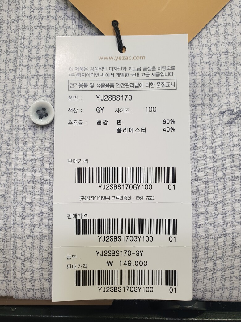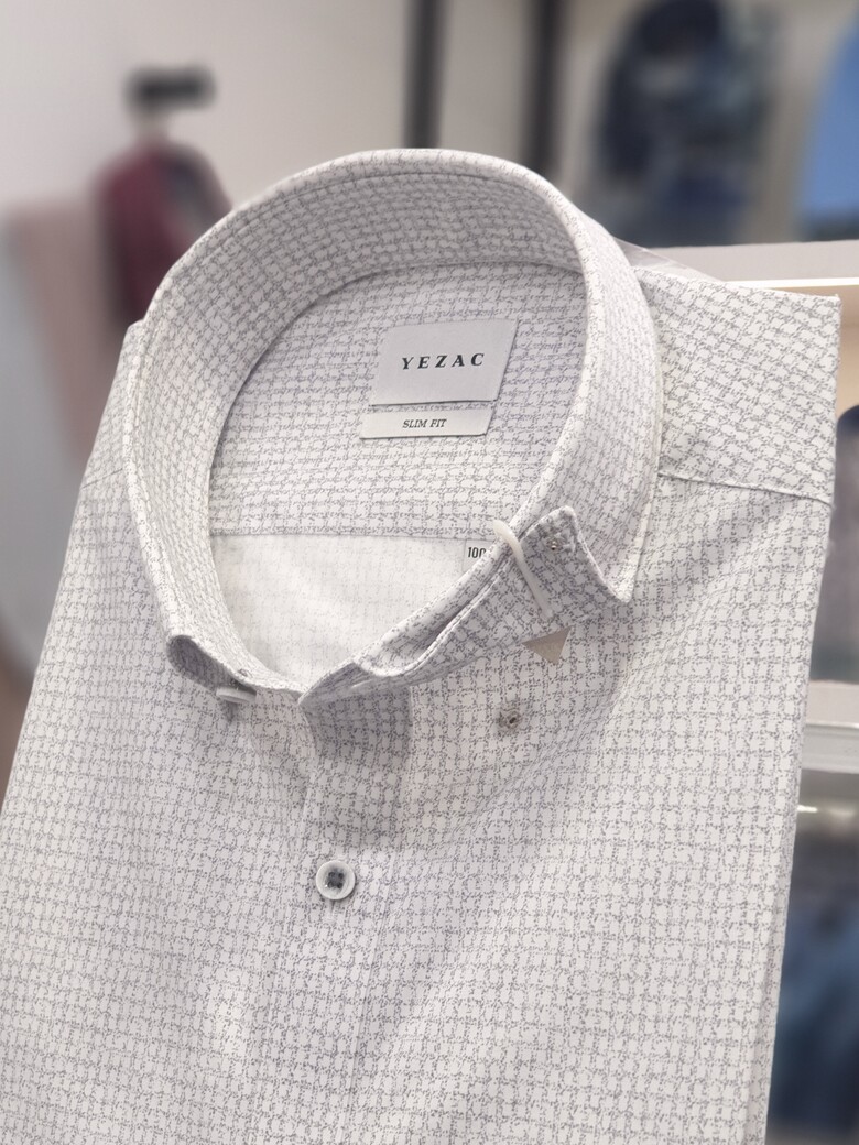 [예작셔츠] 면혼방 카라 스냅버튼 슬림핏셔츠 YJ2SBS170GY