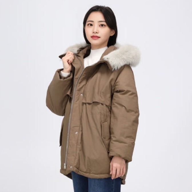 폭스퍼 후드로 고급스러운 포인트를 주었습니다.