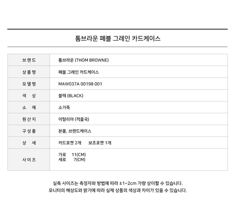 - #리본즈코리아 #MAW037A00198001 #[명품] #25SS #톰브라운 #페블 #그레인 #카드 #블랙 #MAW037A #00198 #001 #남성 #지갑 #카드/명함지갑 #카드지갑홀더