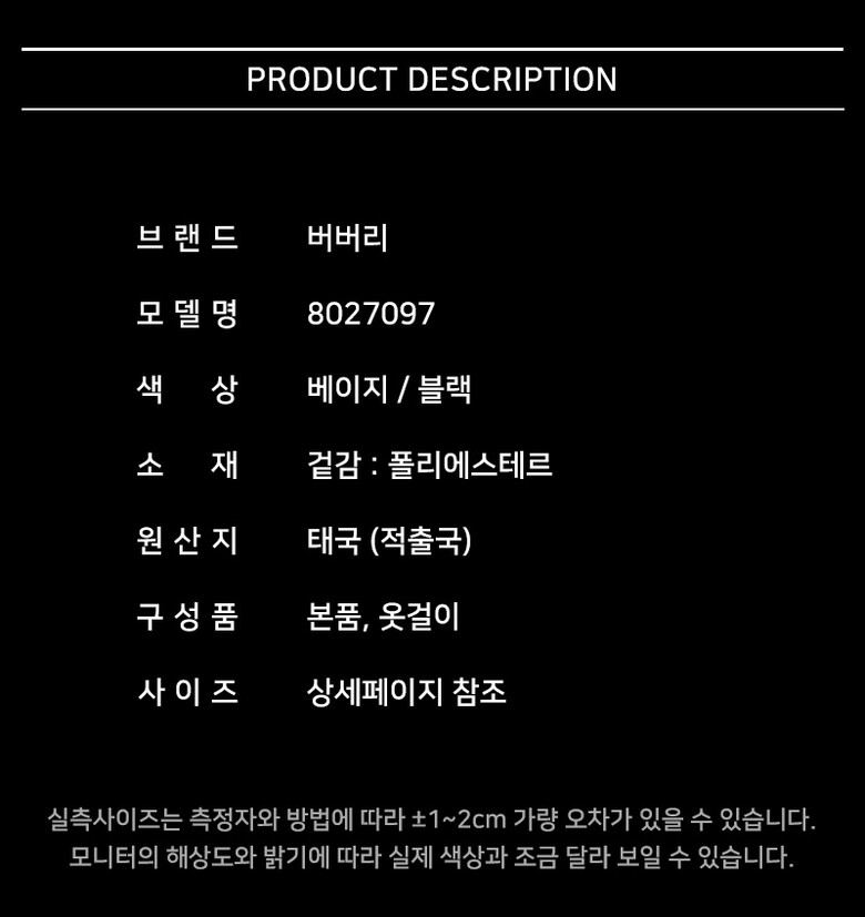 | 6. 세탁방법 및 취급시 주의사항 | 상품상세 참조 |