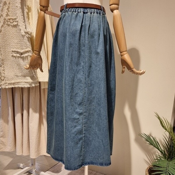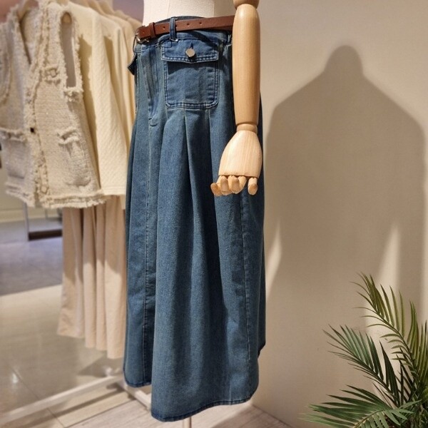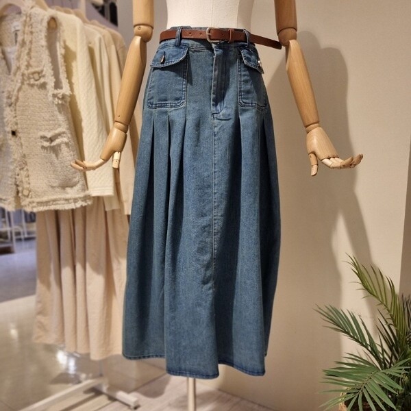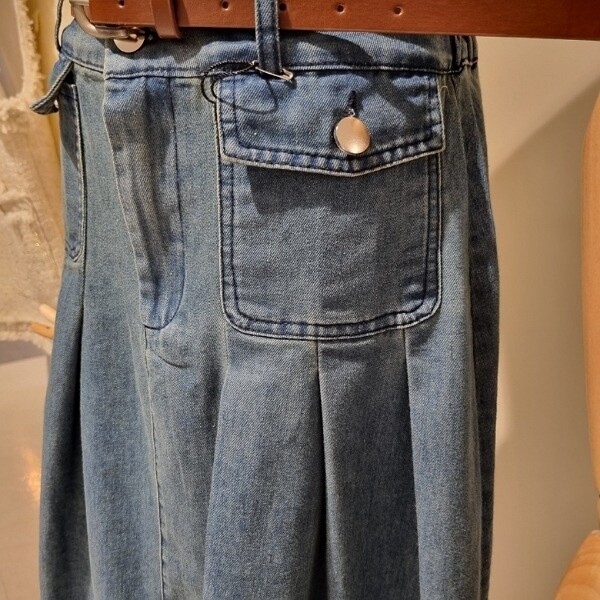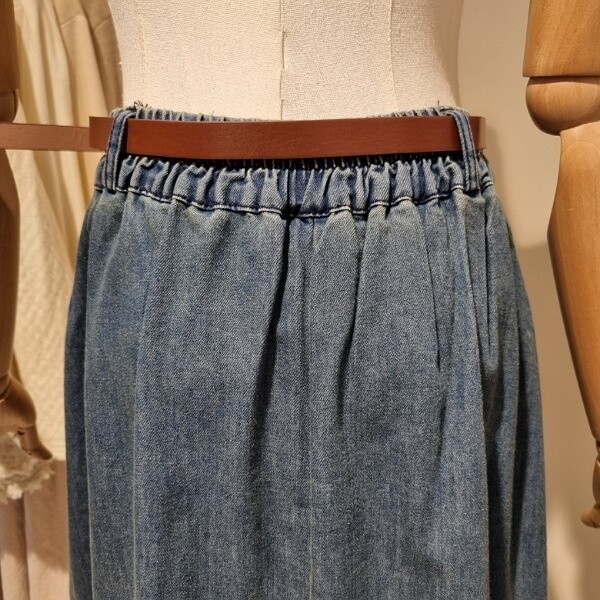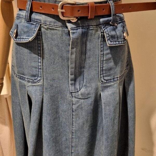 단추아웃포켓이 포인트턱주름으로 여유로운 핏감부드러운 소재의 데님스커트허리뒷밴드