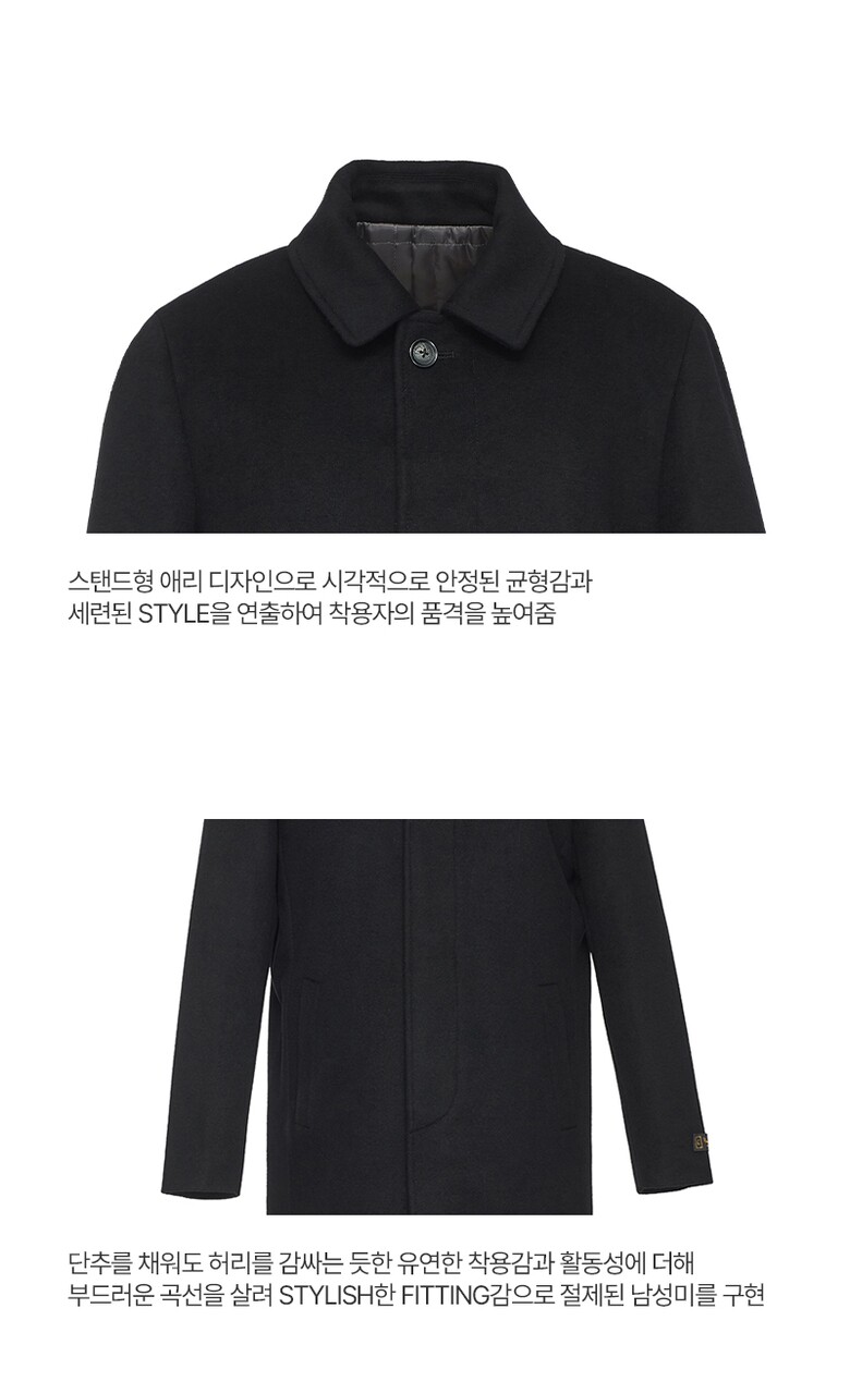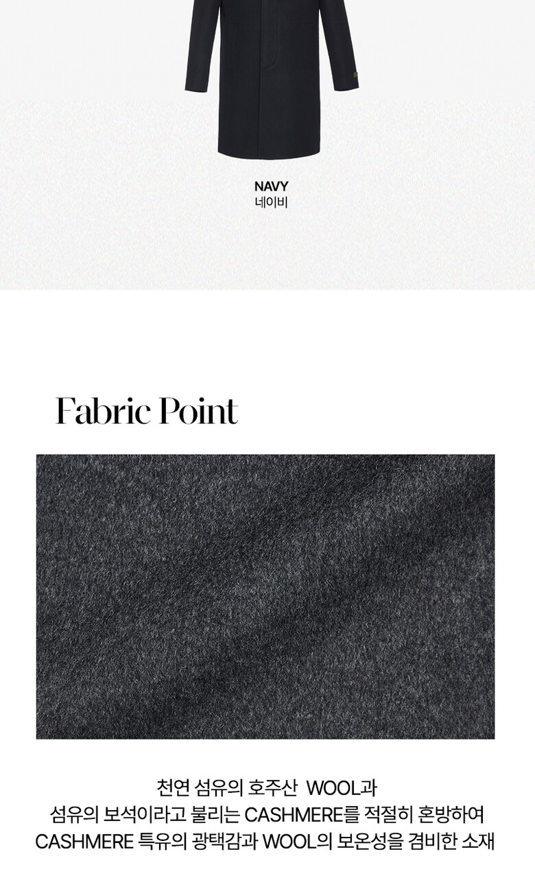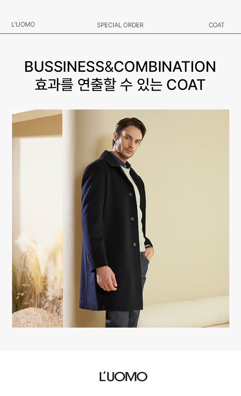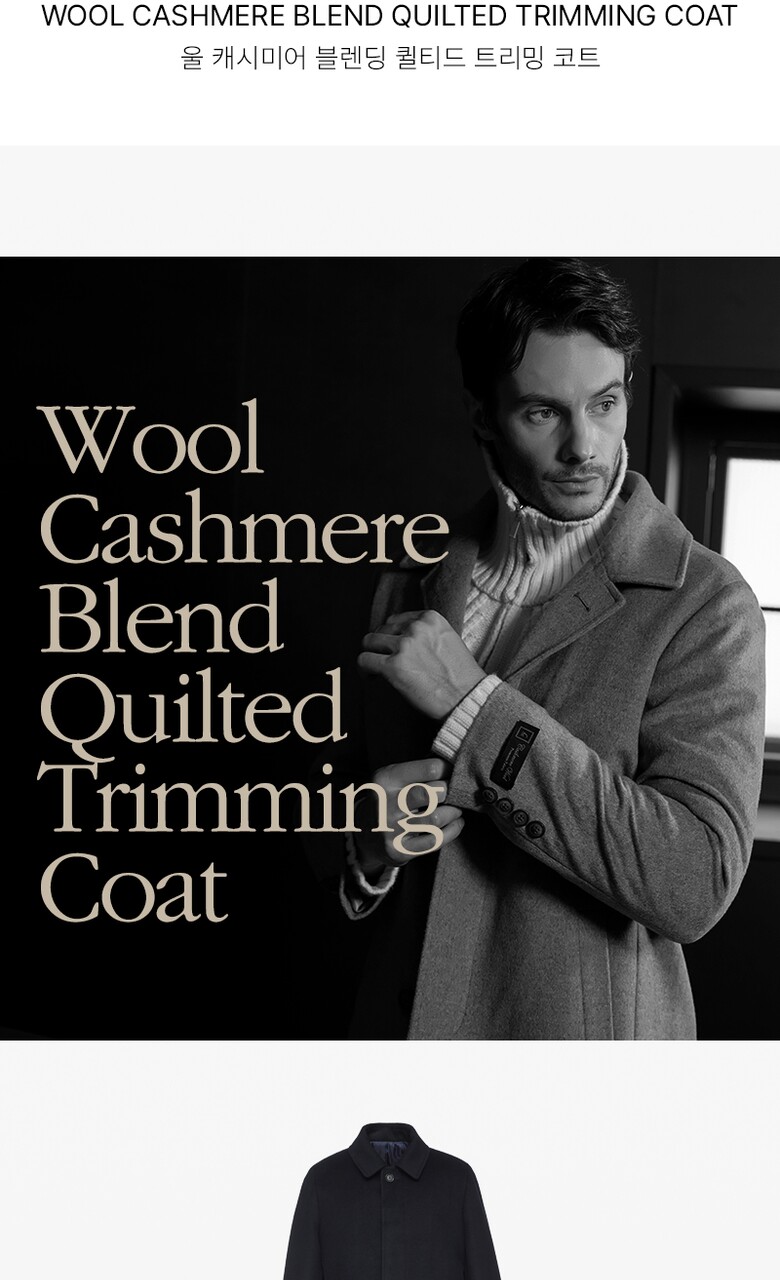 워모 남성 울 캐시미어 블렌딩 퀼티드 트리밍 코트 네이비